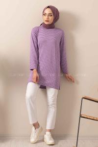 Modalamelif Çizgili Yırtmaçlı Tunik Lila
