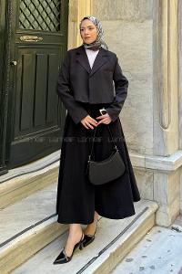 Lamelif Sırt Yırtmaç Detaylı Pensli Ceket Siyah