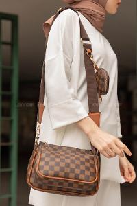 Lamelif Kadın Çok Bölmeli Kapitone Çapraz Çanta Kahverengi