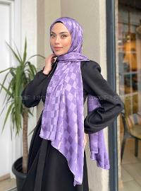 Lamelif Dama Desen Jakar Şal Lavanta