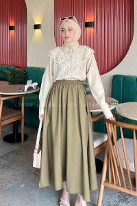 Lamelif Dantel Detaylı Gömlek Taş Rengi