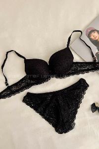 Lamelif Dantelli Destekli Sütyen Takım Siyah Renk