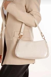 Lamelif Deri Görünümlü Baget Kadın Çanta Krem