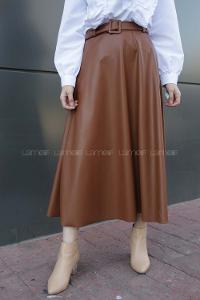 Lamelif Bağlama Detaylı Scuba Etek Kahverengi