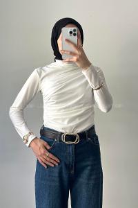 Lamelif Şık Dik Yaka Drapeli Bluz