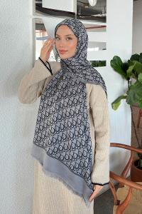 Lamelif Dior Desen Kaşmir Çift Taraflı Şal Gümüş