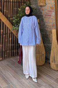 Lamelif Omuz Vatka Detaylı Tesettür Gömlek Saks Mavisi