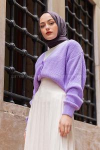 Modalamelif Düğmeli Selanik Hırka Lila
