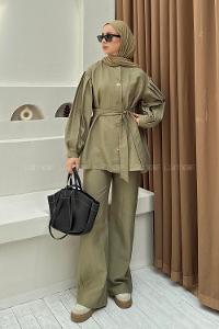 Lamelif Ön Parça Detaylı İkili Takım Haki