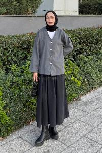 Lamelif Düğmeli V Yaka Ceket Antrasit