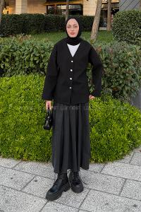 Lamelif Düğmeli V Yaka Ceket Siyah