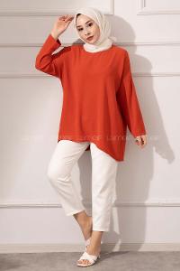 Modalamelif Düşük Kol Ayrobin Bluz Kiremit