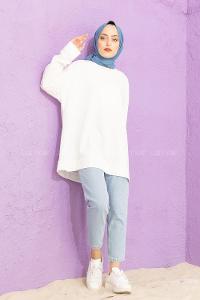 Lamelif Armalı Tesettür Sweat Beyaz