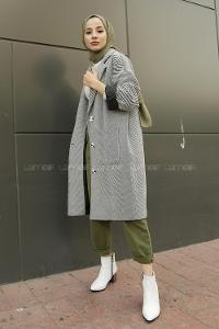 Modalamelif Düşük Kol Uzun Kaban Gri