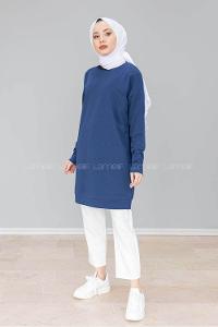 Lamelif Çiçekli İki İplik Tesettür Sweat Mavi
