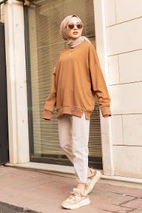 Lamelif Armalı Tesettür Sweat Acı Kahve