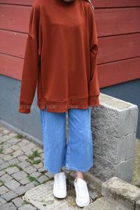Modalamelif Düz Renkli Dikişli Sweatshırt Kiremit