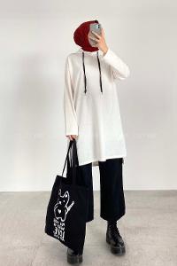 Lamelif Düz Tesettür Model Spor Tunik Beyaz