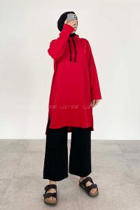 Lamelif Düz Tesettür Model Spor Tunik Kırmızı