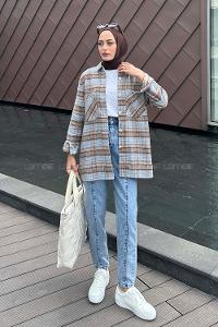 Lamelif Ekose Desen Çift Cep Detaylı Oduncu Gömlek Vizonrengi