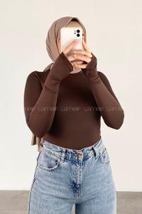 Lamelif Eldiven Detaylı Body Acı Kahve