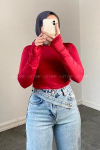 Lamelif Eldiven Detaylı Body Kırmızı