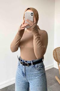 Lamelif Eldiven Detaylı Body Vizonrengi