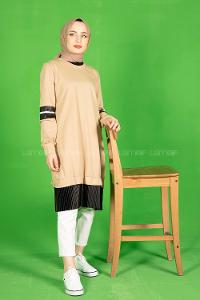 Modalamelif Eteği Fırfırlı Düz Renk Tunik Sütlü Kahve