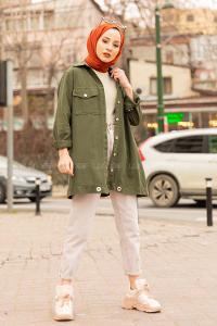 Modalamelif Eteği Kuş Gözlü Ceket Haki