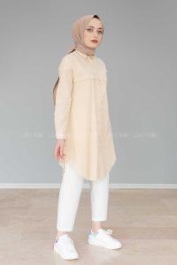Vatka Detaylı Tesettür Gömlek Bej