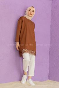 Modalamelif Etek Ucu Dantelli Tunik Acı Kahve