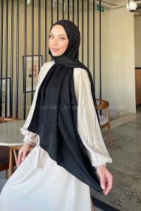 Lamelif G Desen Ayrobin Floş Jakar Şal Siyah