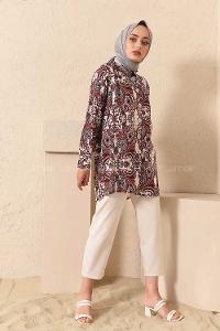Modalamelif Etnik Desen Gömlek Acı Kahve