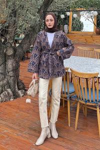 Lamelif Kemerli Tesettür Ceket Kahverengi