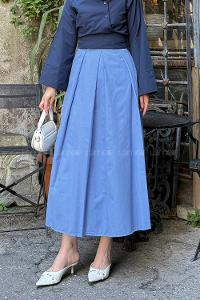 Lamelif Fermuarlı Tesettür Etek Gök Mavi