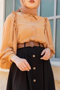 Lamelif Sedef Balon Kol Gömlek Taş Rengi