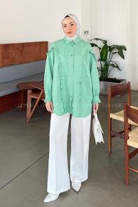 Lamelif Kol Detaylı Gömlek Mint Yeşili