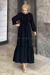 Lamelif Elica Tesettür Elbise Siyah