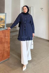 Lamelif Omuz Vatka Detaylı Tesettür Gömlek Lacivert