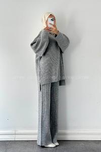 Lamelif Aksesuarlı Triko Takım Zümrüt Yeşili