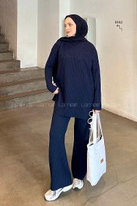 Lamelif Fitilli Triko Tesettür Takım Lacivert