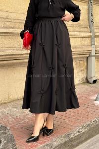 Lamelif Fiyonklu Etek Siyah
