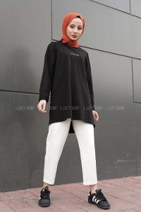 Lamelif İki iplikli Arma Detaylı Sweat Tunik Siyah