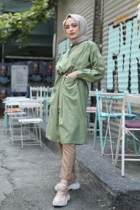 Lamelif Manşeti Biyeli Tunik Fıstık Yeşili