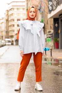 Modalamelif Fularlı Yaka Gipeli Gömlek Tunik Beyaz