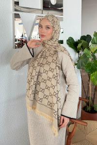 Lamelif G Desen Kaşmir Çift Taraflı Şal Bej Soft Kahve