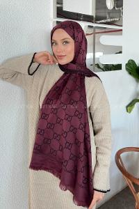 Lamelif G Desen Kaşmir Çift Taraflı Şal Koyu Bordo