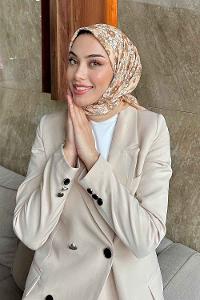 Lamelif Çiçek Desen Soft Eşarp Bej