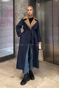 Lamelif Garnili Uzun Trenç Lacivert