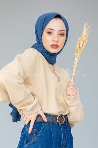 Lamelif Bohem Çiçek Desen Soft Şal Gece Mavisi